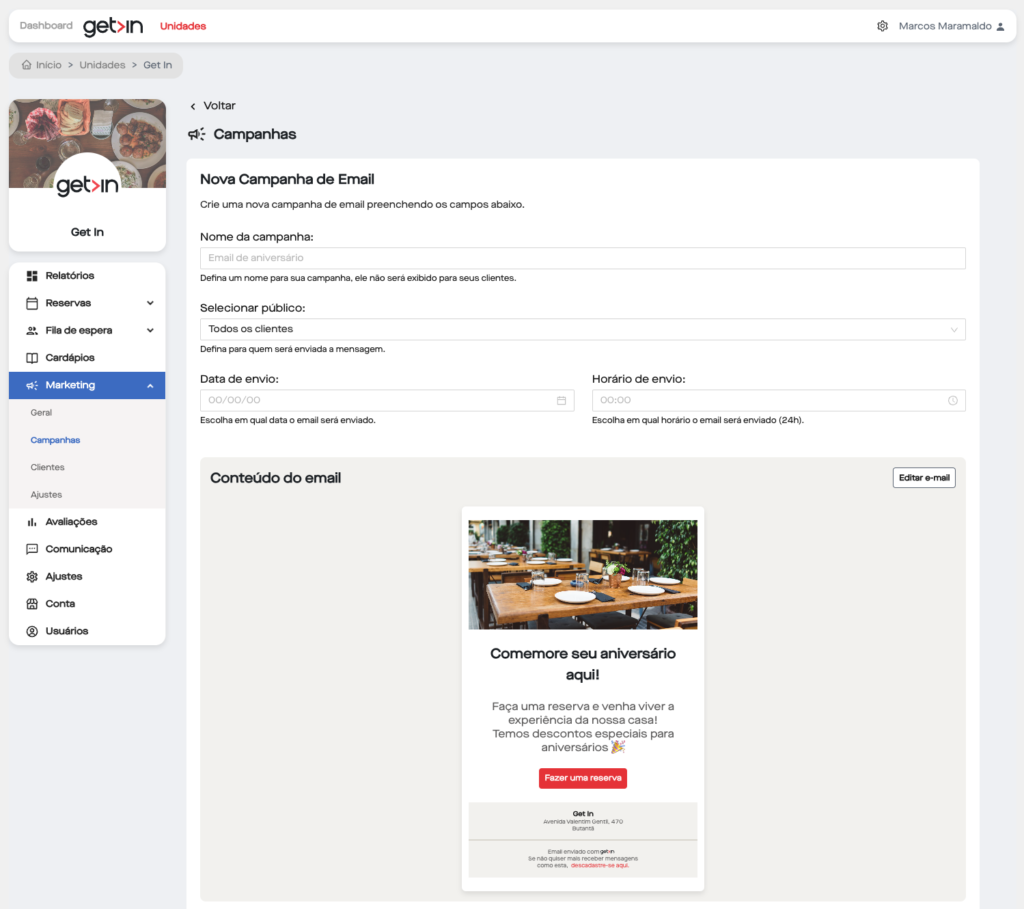 “O CRM é um produto que encaixa perfeitamente na jornada do restaurante que utiliza o Get In. Ao receber clientes vindos de fila ou reserva, o estabelecimento consegue reativar essas pessoas através de campanhas de marketing via e-mail ou mensagem, atraindo de volta um fluxo que já esteve na casa. É o marketing do restaurante integrado à plataforma de fila e reserva”, explicou o Diretor Comercial do Get In, Neto Salvestrini.