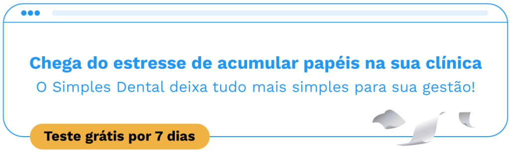Quer experimentar essa e outras funcionalidades do Simples Dental? É só aproveitar nosso teste grátis e já experimentar as vantagens. Você tem sete dias para aproveitar as ferramentas sem compromisso nenhum — nem precisa cadastrar seu cartão de crédito. Aproveite!