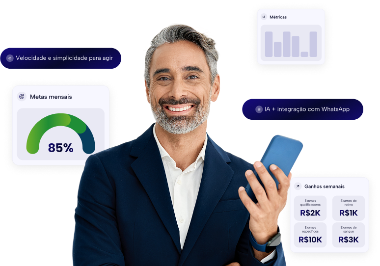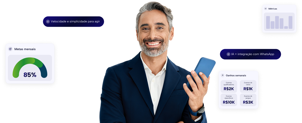 Configure os indicadores mais críticos para o seu dia a dia e receba insights proativos ou consultas instantâneas sobre a saúde do seu negócio.