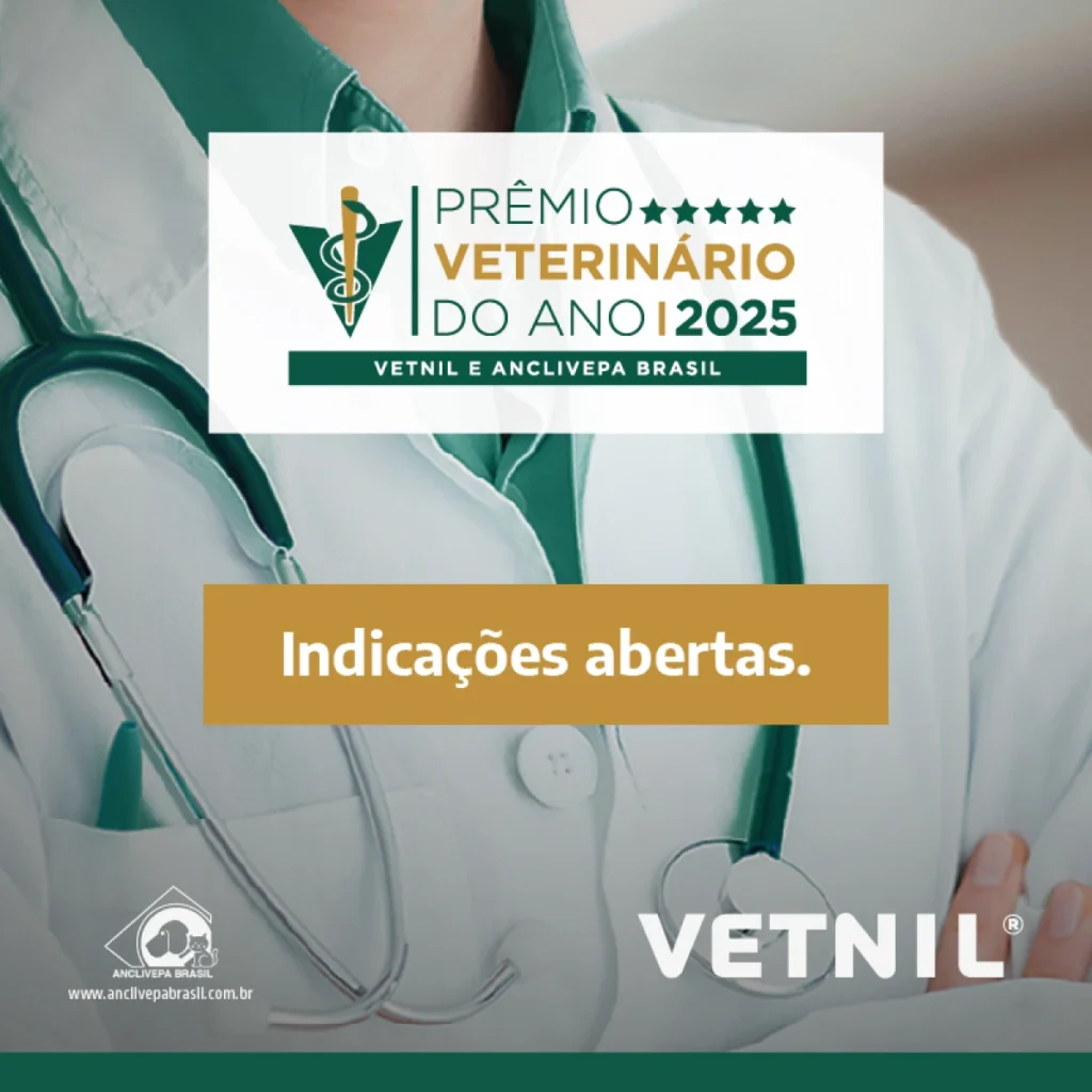 A Vetnil®, em parceria com a Anclivepa Brasil, anuncia a abertura das indicações para o Prêmio Veterinário do Ano Vetnil® Anclivepa Brasil 2025, que chega à sua 14ª edição. A iniciativa reconhece e homenageia os Médicos-Veterinários atuantes na clínica de pequenos animais que se destacaram ao longo do ano por sua dedicação, conhecimento, impacto para o fortalecimento da profissão e saúde animal.