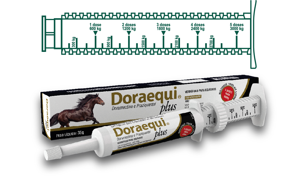 Doraequi Plus® é indicado para equídeos como vermífugo de amplo espectro para o tratamento e controle dos principais vermes, incluindo nematelmintos (vermes redondos) e platelmintos (vermes chatos).